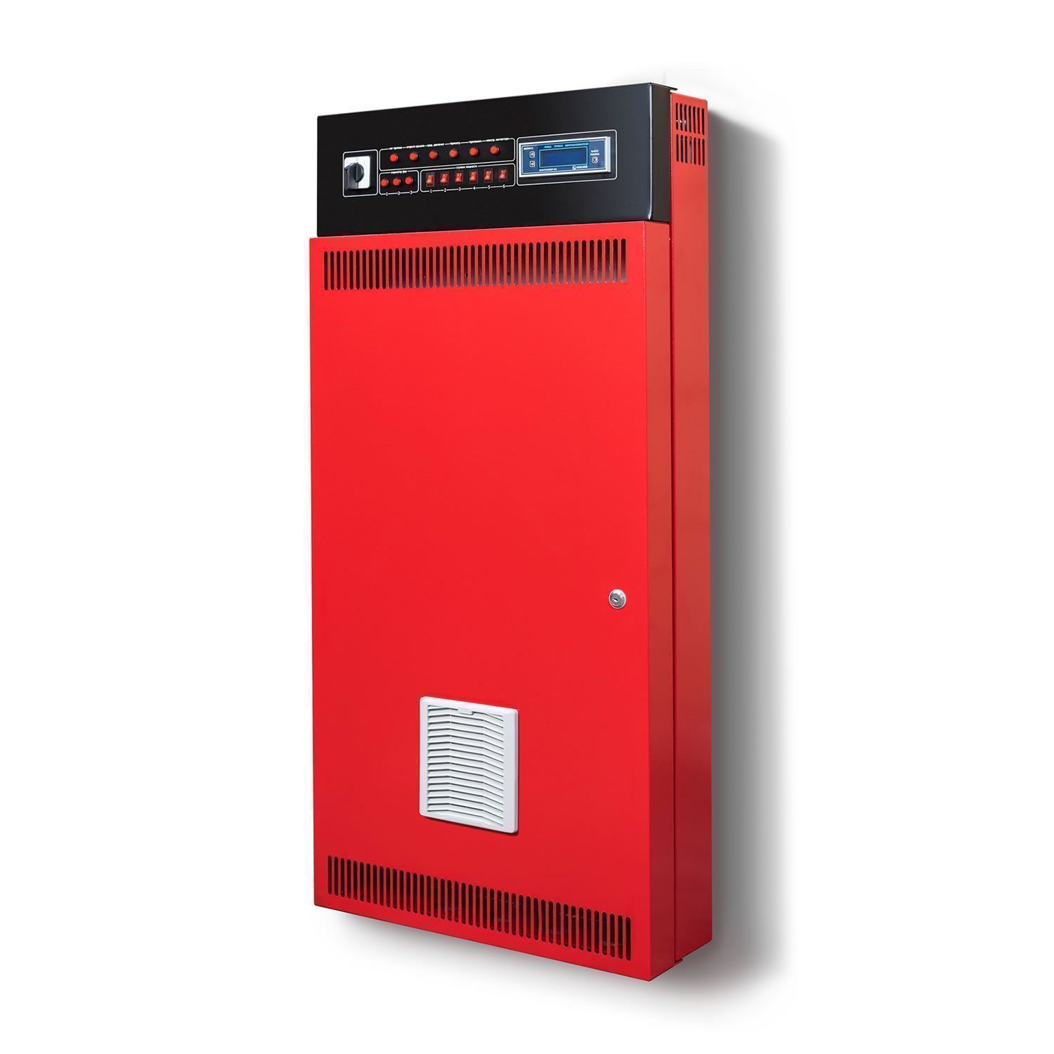 Шкаф автоматики и управления (ШАУ) имеет встроенный погодозависимый контроллер и обеспечивает многоступенчатую защиту каждого нагревательного элемента и котла в целом по всем параметрам.